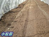 不織布を掛けトンネルに寒冷紗でおおう。 |