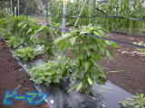 5月4日株間80cm黒マルチ使用により定植。混植栽培(ニラ・落花生・枝豆) | 京波 | ![]() 5月7日現在 |